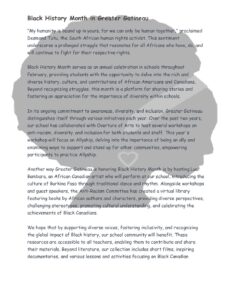 Black history month is an annual celebration in schools in the month of february
