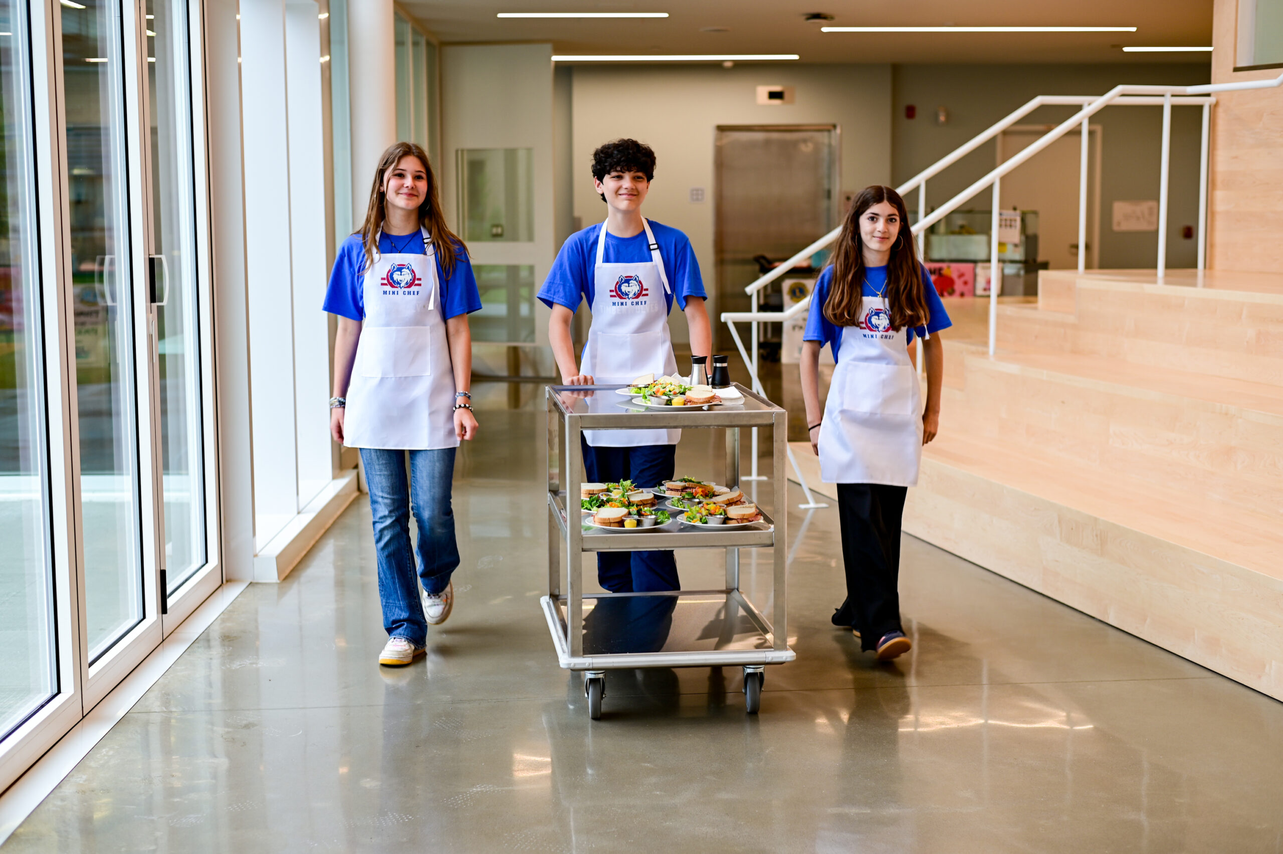 Avant la cérémonie, sous la direction de la chef Joy Sparling, une équipe de mini-chefs de l’école primaire Pierre-Elliott-Trudeau (PETES) a préparé un déjeuner spécial dans la nouvelle cuisine pédagogique. M. Drainville et les représentants de la CSWQ ont pu le déguster dans la nouvelle salle culturelle « Zibi ». Le dîner a été fièrement livré et servi par trois élèves ambassadeurs de la PETES, membres du Club de citoyenneté.