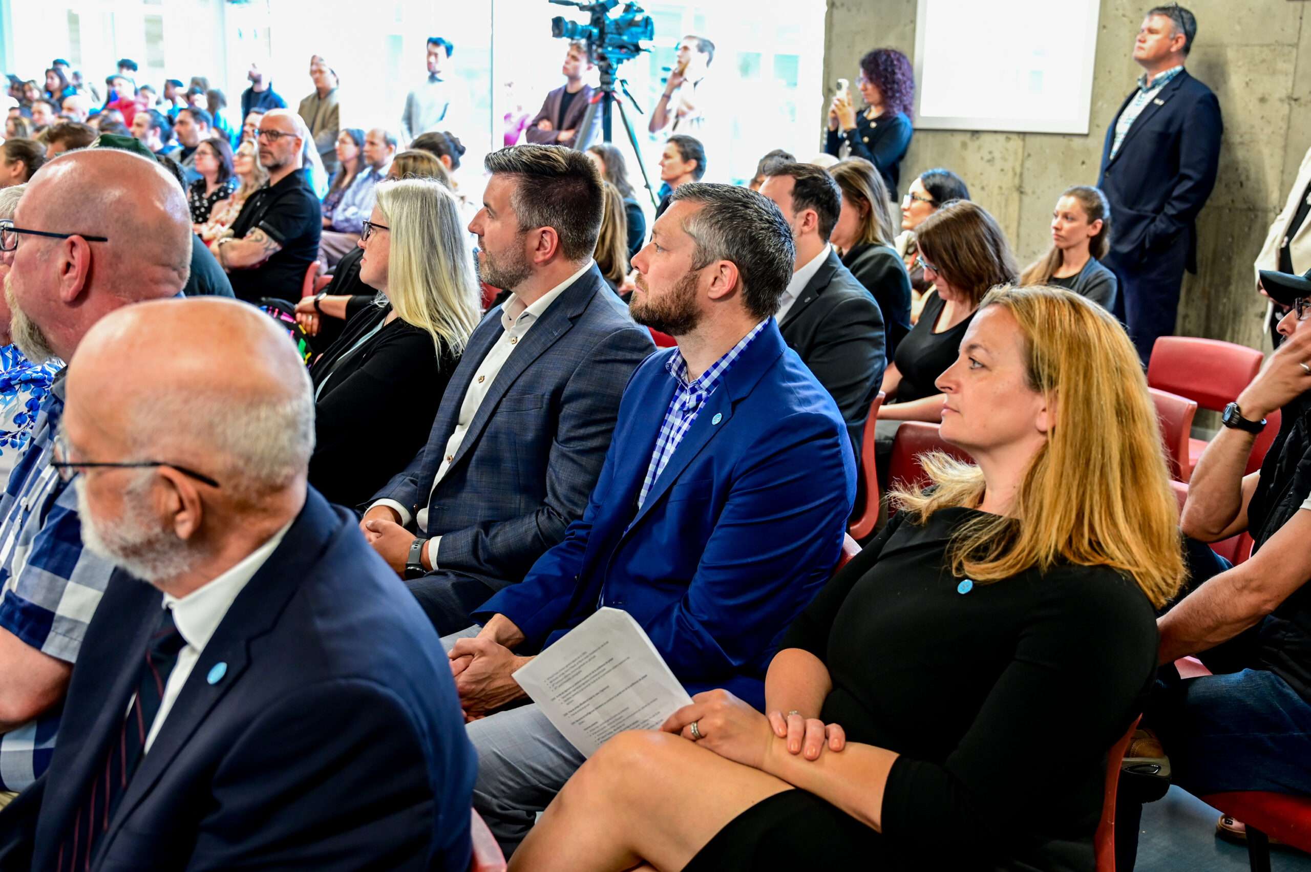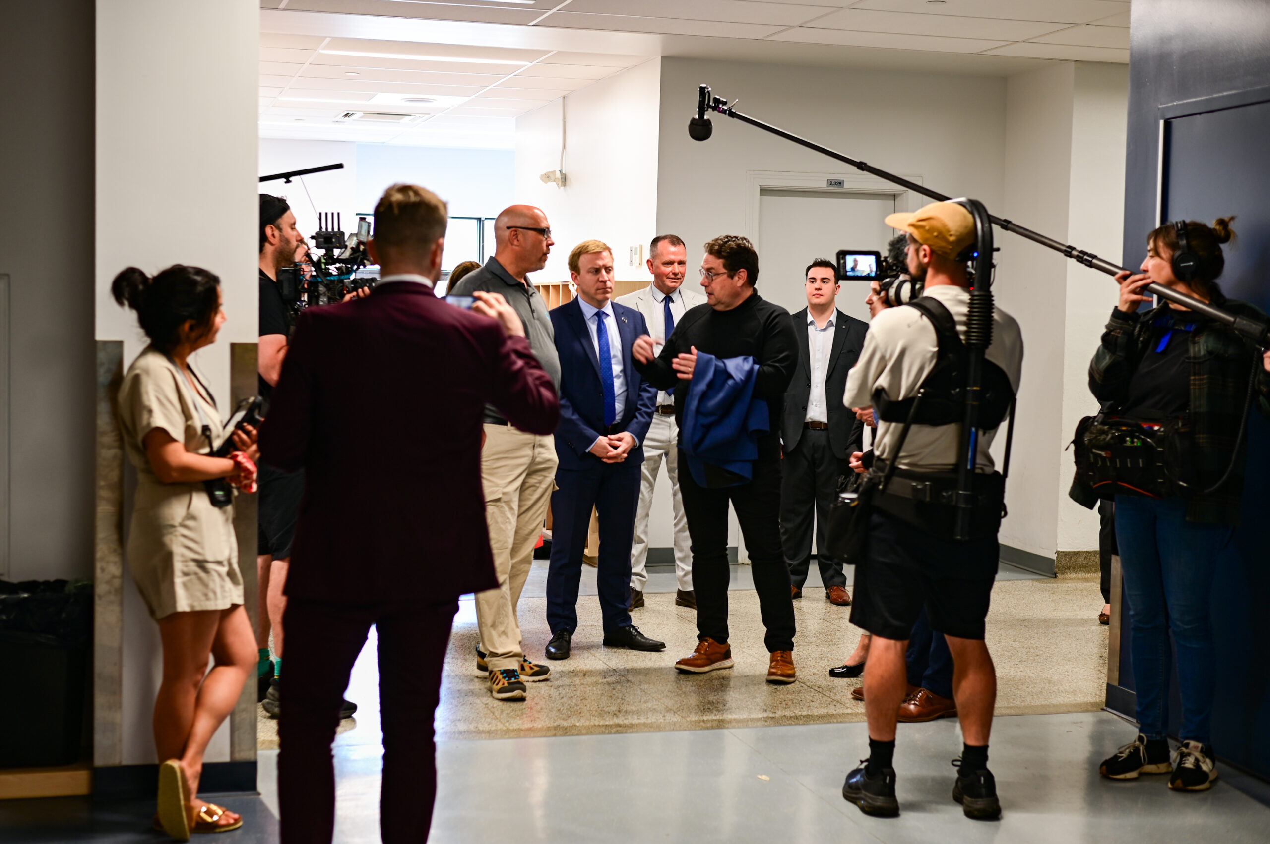 Après les discours, les dignitaires ont échangé avec la presse avant que l’assemblée se réunisse au niveau de la nouvelle bibliothèque ouverte pour la cérémonie d’inauguration, complétant ainsi l’agrandissement du Lab-École.