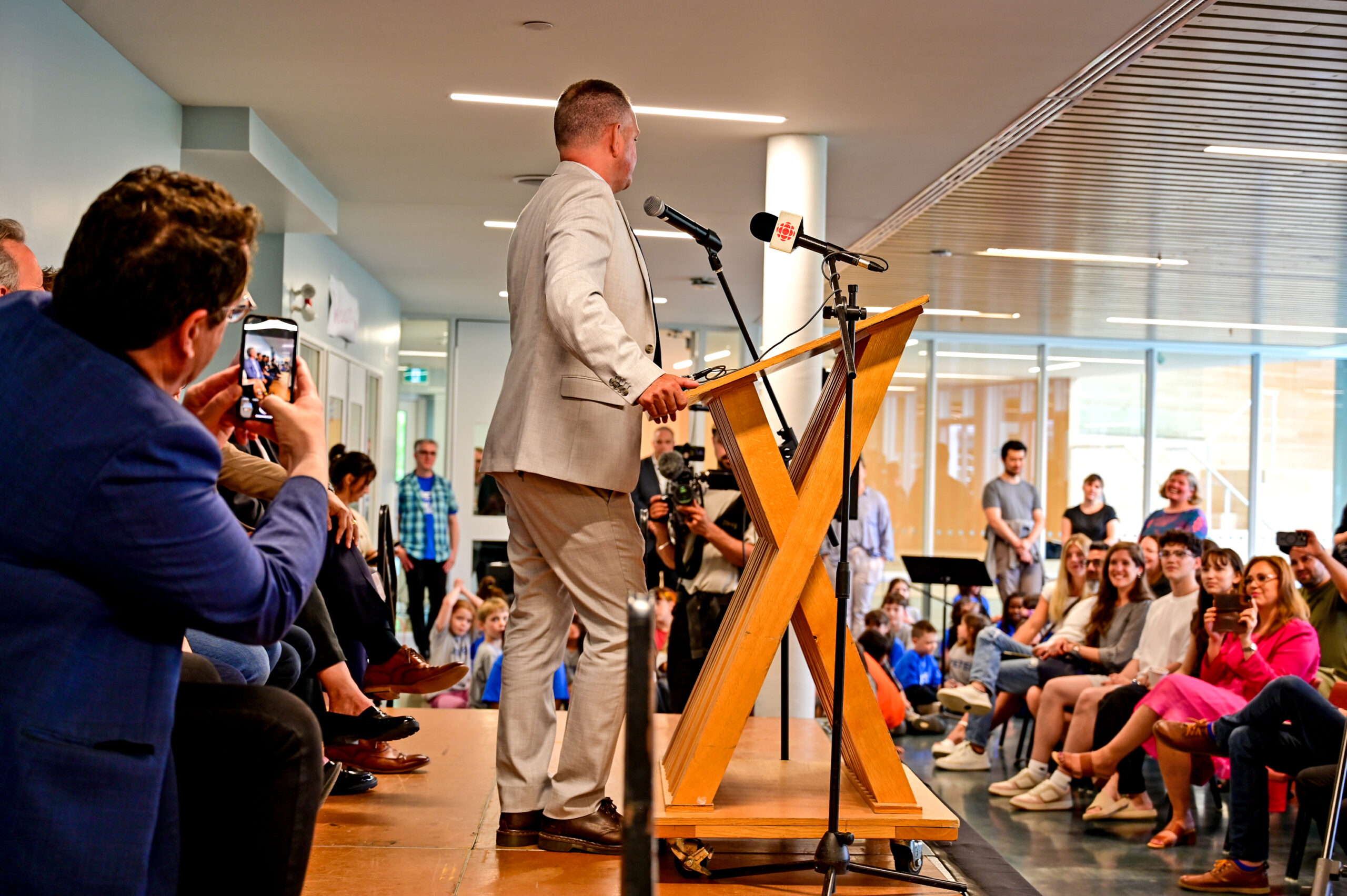 Ce lundi 9 juin 2025, un grand nombre de dignitaires, parents, élèves et de médias s’est réuni à l’école primaire Pierre-Elliott-Trudeau pour un événement très spécial. Inauguré par le ministre de l’Éducation de la province, Bernard Drainville, le nouvel agrandissement, baptisé « Lab-École Gatineau », représente une nouvelle façon d’envisager l’école avec de nouveaux espaces et de nouvelles approches. Le projet représente un investissement de plus de 35 millions de dollars du ministère de l’Éducation. Ce dernier collabore avec la CSWQ et la Fondation Lab-École depuis huit ans l’école sur ce projet d’agrandissement.