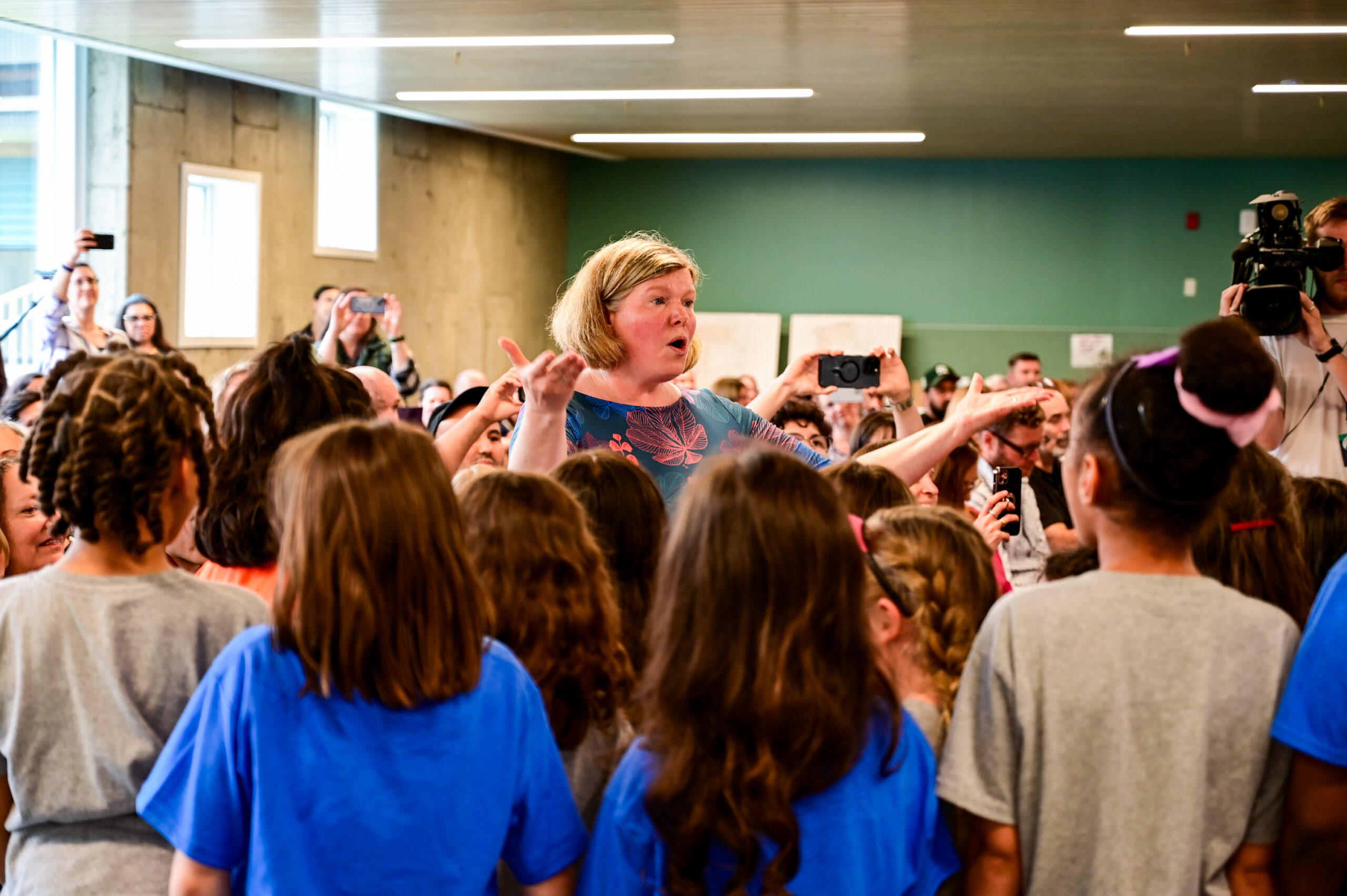 La cérémonie d’inauguration s’est parfaitement bien déroulée, en présence de nombreux directeurs et administrateurs de la CSWQ. Après avoir accueilli et accompagné les invités dans la salle de réception, le club de citoyenneté des élèves était également présent. Sous la direction de Fiona Medley et Tim Piper, la chorale d’enfants (PETES Performance Group) a chanté « Ô Canada » en anglais, en français et en algonquien devant un public captivé et des parents fiers.