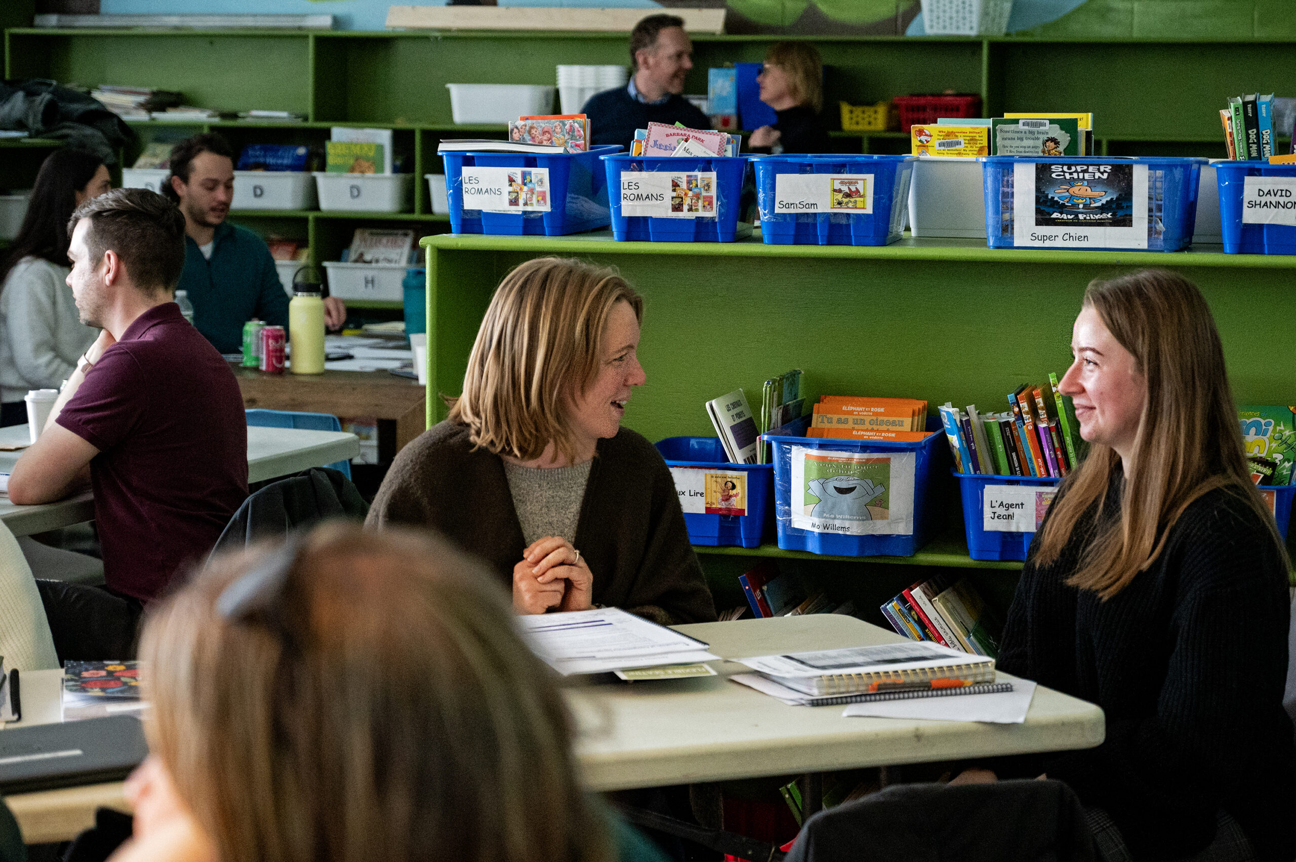 La journée d’orientation est l’occasion d’établir des liens, de réfléchir et de se préparer. L’atmosphère était chaleureuse et amicale dans la bibliothèque du campus junior de l’école primaire Lord Aylmer, alors que les étudiants-enseignants de Bishop et leurs enseignants associés de la CSWQ passaient du temps à discuter de leurs salles de classe et à planifier les stages à venir. Les consultants de la CSWQ étaient présents pour donner un aperçu de la commission scolaire, partager des stratégies d’enseignement et souligner l’importance du professionnalisme, des relations et de la croissance pour la culture de l’enseignement et de l’apprentissage dans toutes les écoles de la CSWQ.