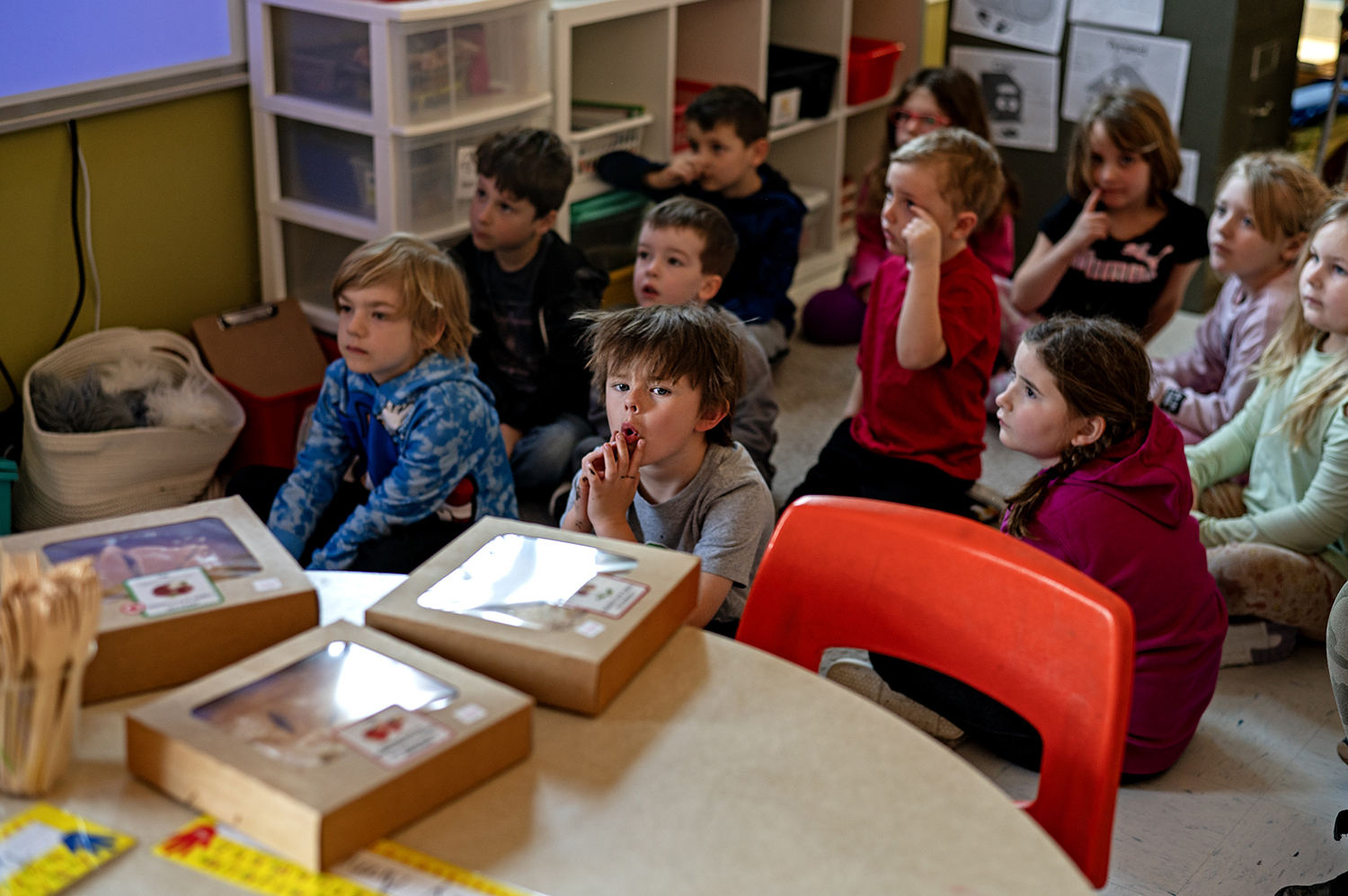 L’idée d’organiser ces jeux est venue directement des élèves lors d’une réunion matinale et d’un cercle de partage. L’établissement de relations entre les élèves de différentes classes est une caractéristique essentielle de l’école qui est mise en pratique tout au long de l’année. Les groupes de classes mixtes font des promenades dans la nature ensemble, se rendent à plusieurs reprises à la bibliothèque locale et participent régulièrement aux activités de l’école. En janvier, la classe de Mme Gervais a montré aux élèves de maternelle 4ans et de troisième et quatrième année comment utiliser les trousses robotiques « Spike Robotics » de Lego. Lorsque l’idée des jeux mathématiques de la classe de première année a été présentée aux enseignants des classes de maternelle 4 ans et cinquième année, elle a été accueillie avec enthousiasme et les préparations ont commencé !