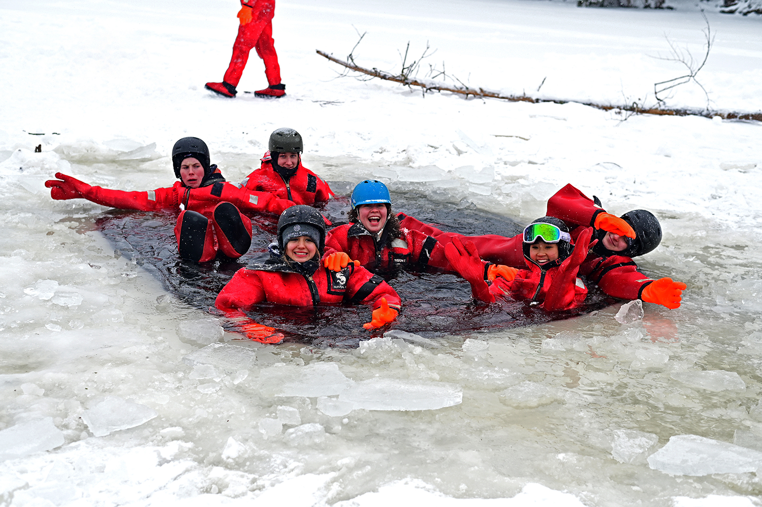 Near the end of the two-day training, they had all their newfound skills put to the test. They were asked to go hide while the trainers and Mr. Orlando created a rescue scenario. The students got to work immediately, assigning one student as their lead who then created teams, delegating tasks and responsibilities to each. Teamwork was clearly evident, and they saved all three ‘victims’, treating them all appropriately for the stage of hypothermia that they presented in the simulated scenario.