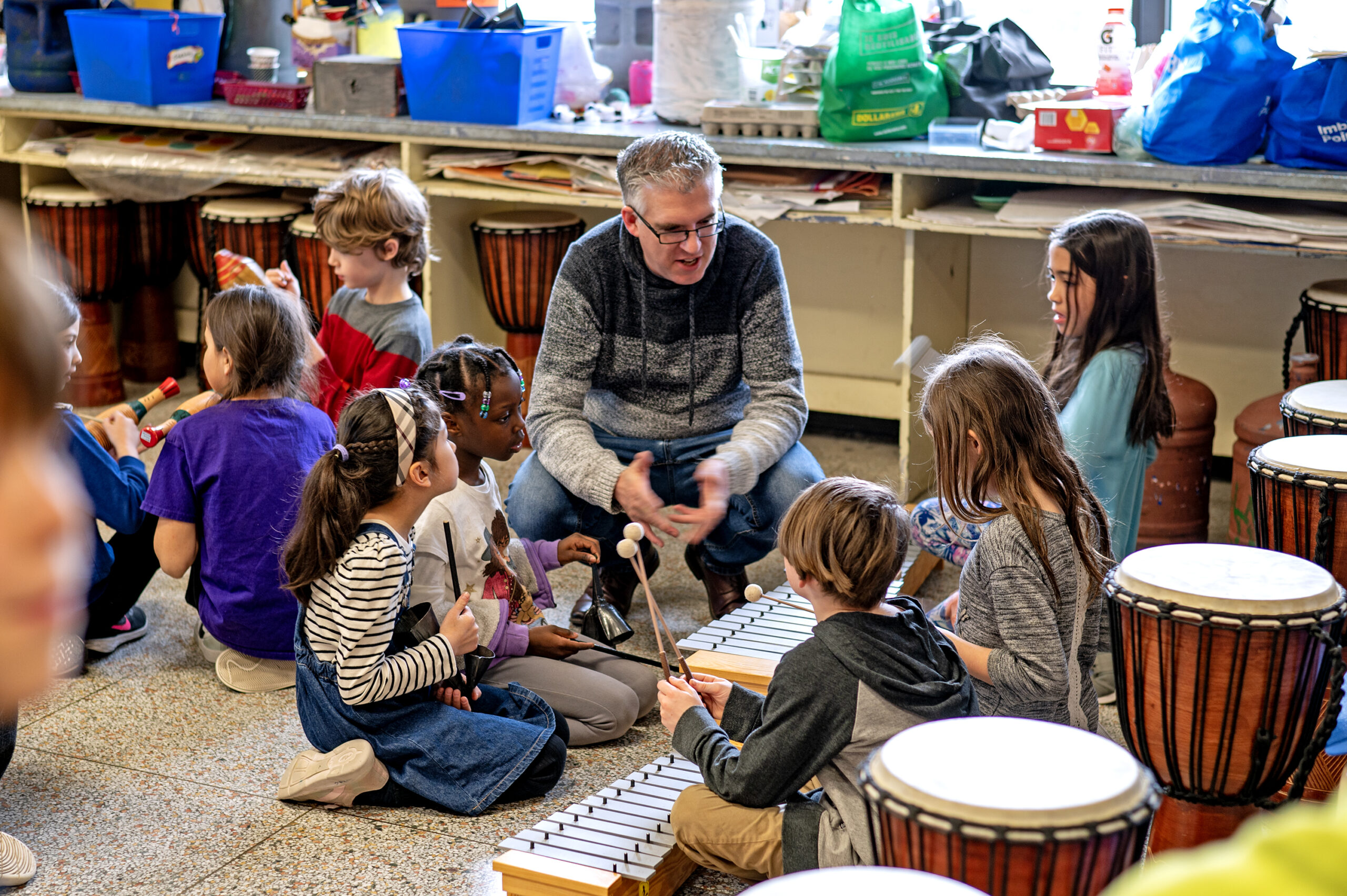 In November, Mr. Piper begins visiting the Grade 3 classes and teaching the basic elements of music. Through lots of exploration, students start to appreciate pitch and melody, learn to recognize the difference between rhythm and beat and eventually learn to make their own compositions. During this process, Ms. Medley and Mr. Piper encourage students to develop and have confidence in their singing voices.